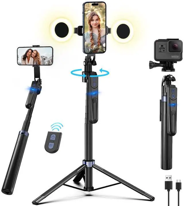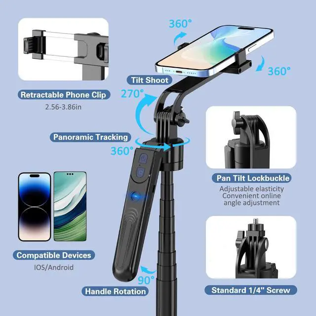 Step 1: First of all, make sure that the 360° rotation axis of the selfie stick is unlocked.The 360° rotation axis of the selfie stick is located on the back of the selfie stick. If you do not want the selfie stick to rotate, you can lock it.