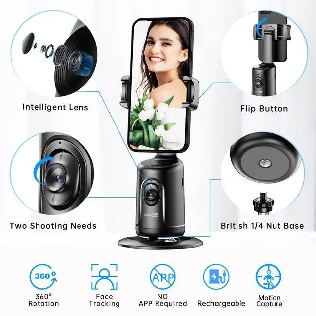 With 360°rotation, the auto-tracking phone holder allows you to switch from portrait or landscape orientation when taking a picture. At the same time, it could be moved up and down for a better shooting angle. Wherever you, fast follow.