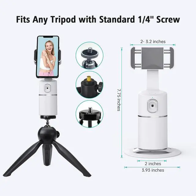 With 360°rotation, the auto tracking phone holder allows you to switch from portrait or landscape orientation when taking a picture.