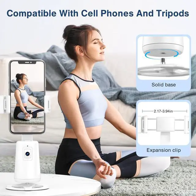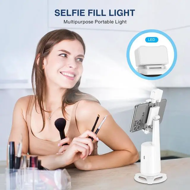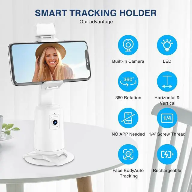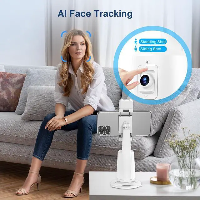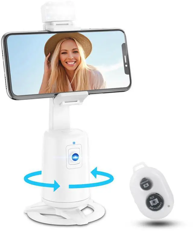 Auto Face Tracking Tripod 360° Rotating Auto Tracking Phone Stand, No App, Phone Camera Stand with Remote and Gesture Control, Rechargeable Smart Shooting Stand for Live Video Recording Tiktok (White)