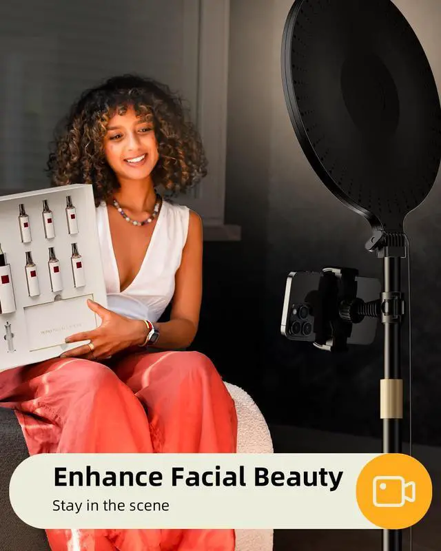 Elevate your content creation with this versatile ring light. Perfect for photography, videography, live streaming, and more, this ring light provides even, flattering illumination to enhance your visuals. With adjustable brightness levels and color temperature settings, you can easily customize the lighting to suit your needs. The ring design eliminates harsh shadows, creating a soft, diffused light that flatters your features. Compact and portable, this ring light is easy to set up and use, making it an essential tool for anyone looking to take their content to the next level. Whether you're a professional photographer, YouTuber, or just love taking selfies, this ring light will help you capture stunning, well-lit images and videos. Measuring approximately 10 inches (25.4 cm) in diameter, it's the perfect size for desktop or tabletop use. Upgrade your lighting game and take your content creation to new heights with this versatile ring light.