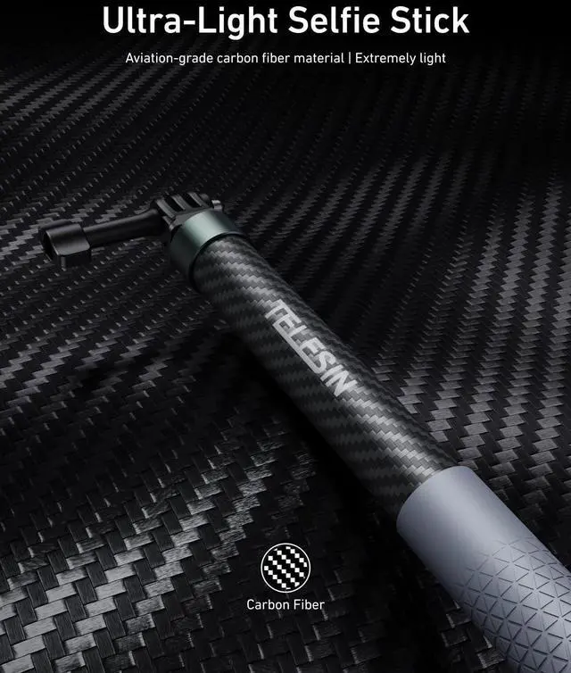TELESIN WATERPROOF LIGHTWEIGHT CARBON FIBER EXTENSIONS SPORTS & ACTION CAMERA SELFEI POLE MONOPOD
