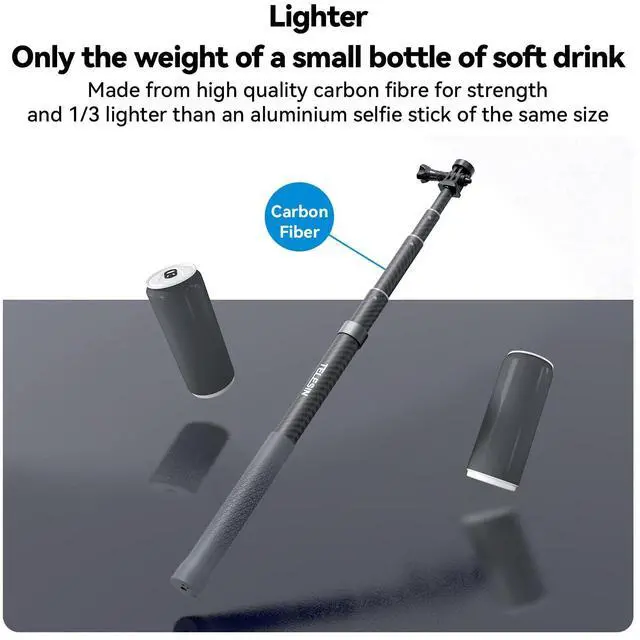 TELESIN UPGRADED 118"/3M SUPER ULTRA LONG WATERPROOF LIGHTWEIGHT CARBON FIBER EXTENSIONS SPORTS & ACTION CAMERA SELFEI POLE MONOPOD