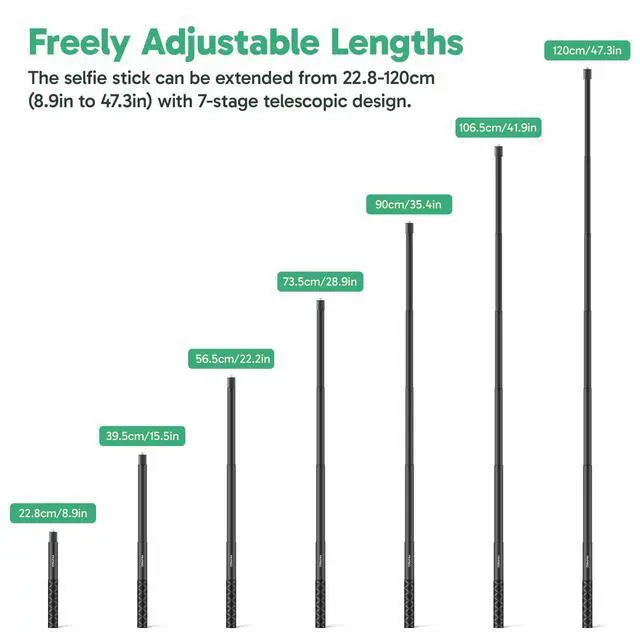 AKASO 47.2"/120cm Invisible Selfie Stick - Aluminum Alloy Invisible Pole for Insta360 X5/4/3, DJI Osmo 360, GoPro Hero 13/12/11, AKASO 360/EK7000/EK7000 Pro, Brave 4/4 Pro, Brave 7/7 LE Action Camera