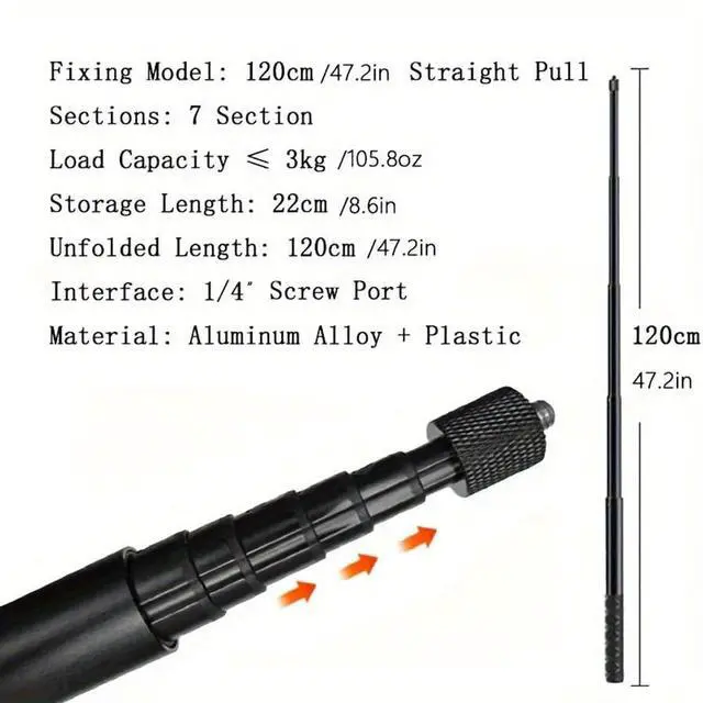 1. The material is aviation aluminum alloy, the handle is made of high-quality PC, it is sturdy and durable, and the load. bearing capacity is 105.8oz . 2. lt is a 360-degree rotating handle with a 1/4 screw on thetop, and can also be used as a desktop tripod. 3. The handle tripod can be magnetically absorbed to keep it stable and not loose. 4. Use a selfie stick, adjust the camera to bullet time mode,and shake it horizontally at a constant speed to easily shootcool bullet time movies.