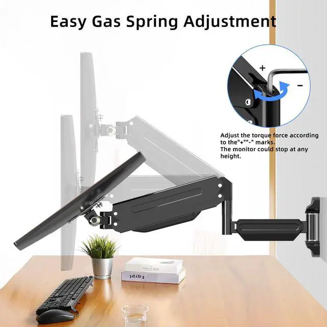 SUPTEK wall gas spring monitor mount provides an ergonomic solution for a more comfortable, more productive working environment.