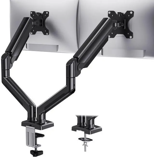 Featuring aerospace-grade aluminum alloy and high-quality system, the dual monitor stand provides rock-solid stability for up to 22 lbs on each arm. The strong construction keeps both of your large screens steady without unwanted wobble or sagging.