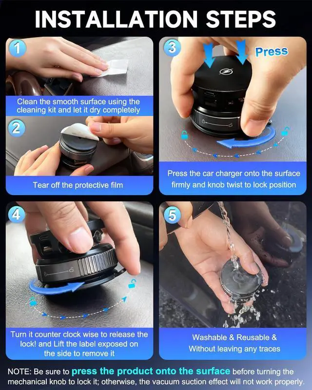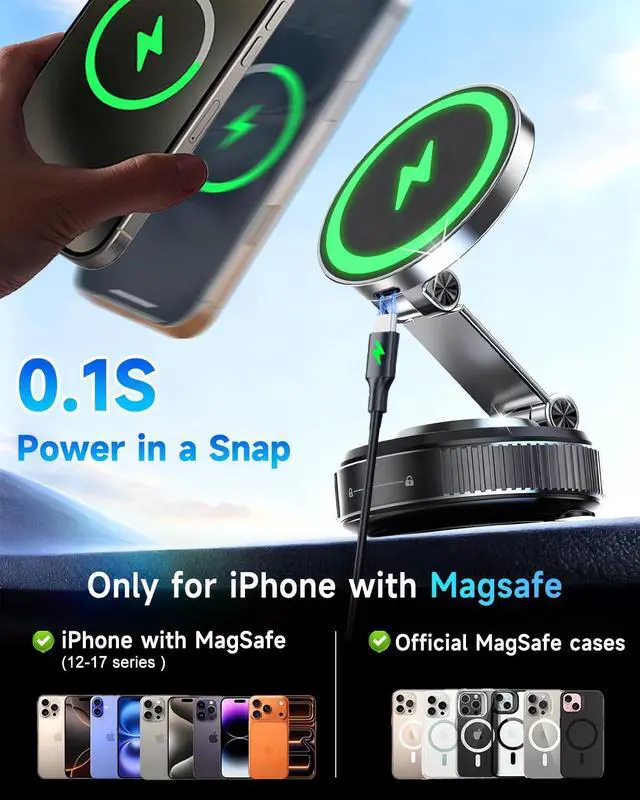 Suction Pad with TPU Glue-Fit for 99% Position This upgraded magnetic wireless charging mount features dual technology with vacuum suction and TPU glue, ensuring a firm grip on both textured and smooth flat surfaces. It is suitable for car windows, dashboards, center screens, armrests, mirrors, glass countertops, marble, tiles, gym equipment, and more. Perfect for a wide range of scenarios including driving, workouts, bathing, cooking, or makeup routines