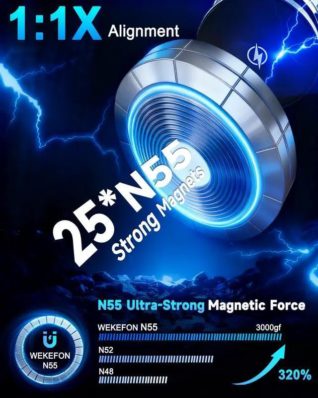 Designed for MagSafe With 25 x N55 magnets, this MagSafe mount is 320% stronger, holding up to 3000gf force. Tested on rough roads and sharp turns, it keeps phones secure. Heat-dissipation design ensures safe, stable performance without signal interference