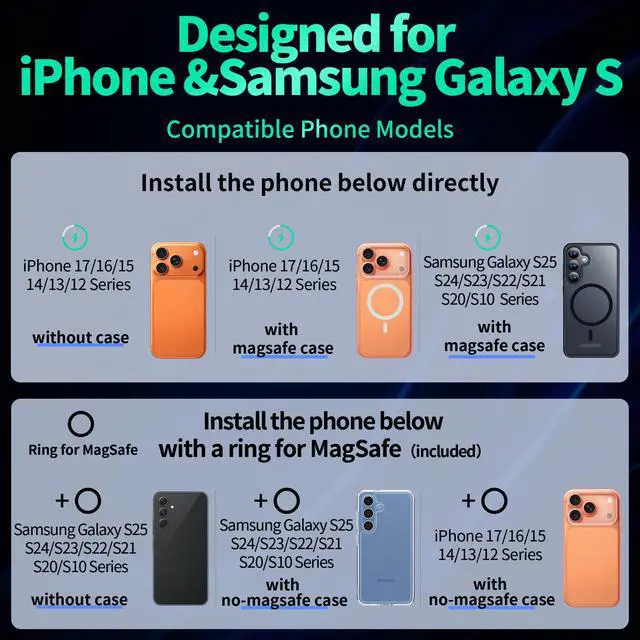 | Compatible Phone Models | iPhone 17, iPhone 17 Air, iPhone 17 Pro, iPhone 17 Pro Max, iPhone 16, iPhone 16 Plus, iPhone 16 Pro, iPhone 16 Pro Max, iPhone 15, iPhone 15 Plus, iPhone 15 Pro, iPhone 15 Pro Max, iPhone 14, iPhone 14 Plus, iPhone 14 Pro, iPhone 14 Pro Max, iPhone 13, iPhone 13 Pro, iPhone 13 Pro Max, iPhone 13 mini, iPhone 12, iPhone 12 Pro, iPhone 12 Pro Max, iPhone 12 mini;Samsung Galaxy S25,Galaxy S25+,Galaxy S25 Ultra,Samsung Galaxy S24,Galaxy S24+,Galaxy S24 Ultra,Galaxy S23,Galaxy S23+,Galaxy S23 Ultra,Galaxy S22,Galaxy S22+,Galaxy S22 Ultra,Galaxy S21,Galaxy S21+,Galaxy S21 Ultra,Galaxy S20,Galaxy S20+,Galaxy S20 Ultra,Galaxy S10,Galaxy S10+; |