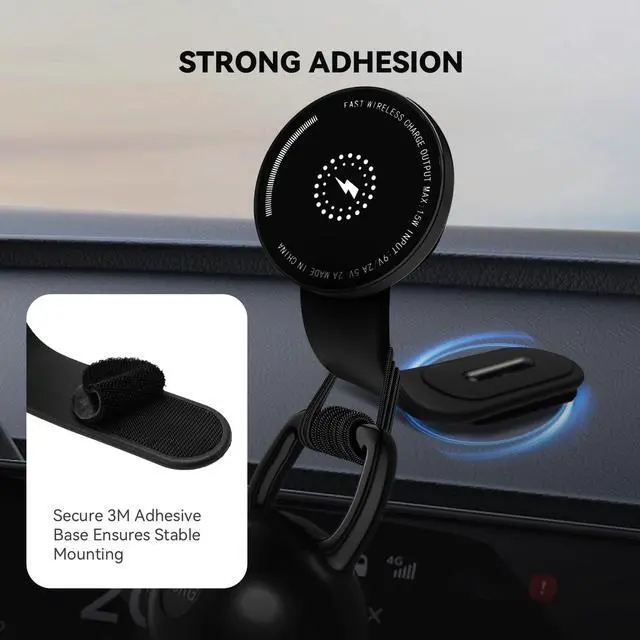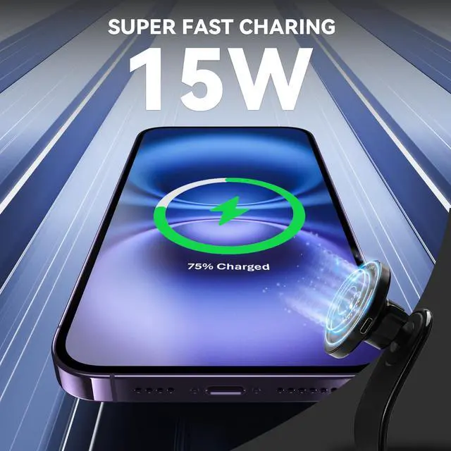 Upgrade your driving experience with this sleek black magnetic car phone mount that combines secure holding power with convenient wireless charging capability. This versatile mount delivers fast 15W wireless charging while keeping your phone perfectly positioned for navigation. The magnetic mounting system ensures your device stays firmly in place during your journey, while allowing for quick attachment and removal. The thoughtfully designed holder enables easy viewing angles for safe navigation, making it an essential accessory for modern drivers. Compatible with MagSafe technology, this mount provides a seamless integration between your phone and vehicle. The sophisticated black finish complements any car interior, while the built-in safety features protect your device during charging. Whether you're commuting, road-tripping, or using navigation for daily errands, this mount offers the perfect blend of functionality and convenience.