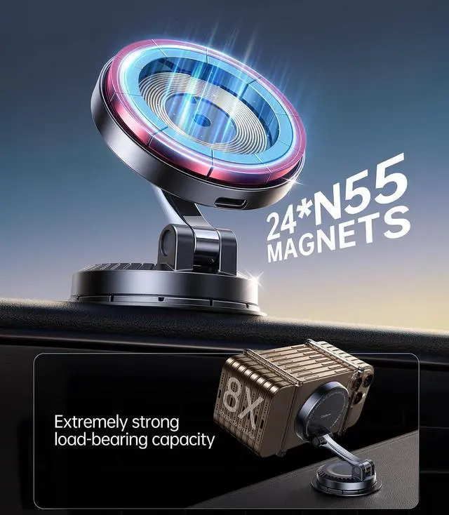 Coolpow for MagSafe Car Mount Charger15W Faster Charging2025 Ultra Magnetic Wireless Car Charger for iPhoneHands Freefor MagSafe Car Charger for Car Dashboard for iPhone 16 Pro Max15 14 13 12 Plus