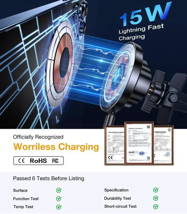 for MagSafe Car Mount Charger360° Rotation15W Fast Charging Wireless Car Phone Holder Charger for Vent DashboardStrong MagnetsMagnetic Phone Holder Mount Charger for iPhone 16 Pro Max 15 14 13 12