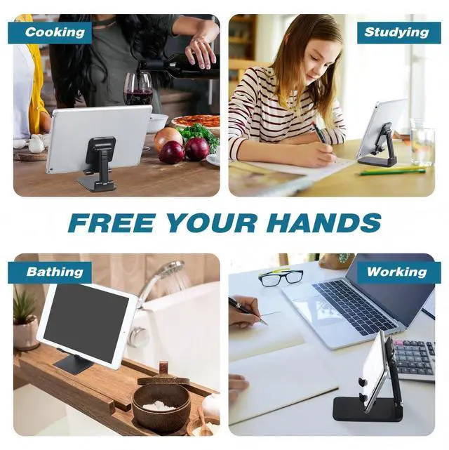 This phone stand for desk can provide the proper viewing angle through height and angle adjustment, allowing you to liberate your hands.