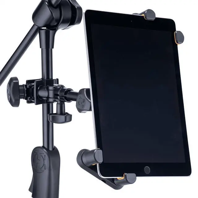 - Attaches to a desk, round and square tubes like keyboard stands, microphone stands or music stands.