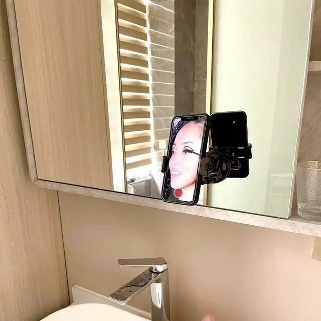 FLEXIBLE USE: The multi-directional dual 360-degree swivel design gives you flexibility for optimal viewing angles, and the adhesive vacuum pads are reusable and leave no residue. When you want to travel but don't want to carry a tripod, this phone holder can hold your phone against the wall at the proper level for video recording.