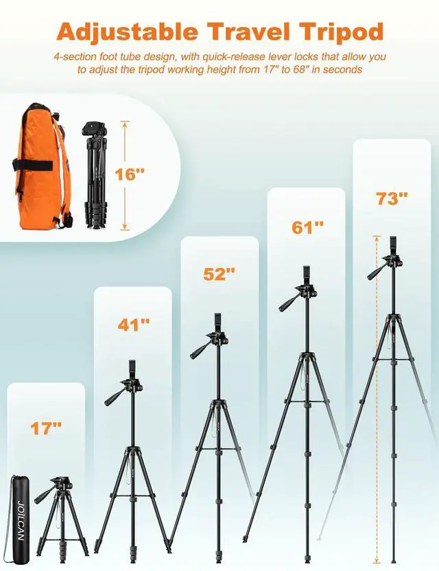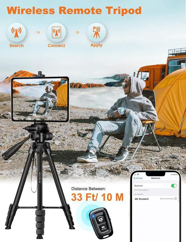 Wireless Remote Tripod: works with cellphones ( IOS 5.0+ and Android 4.3+).