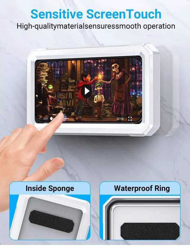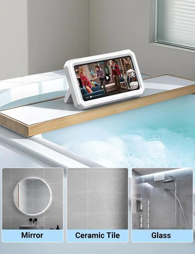 HD Screen & Smooth Touch: Phone Shower holder waterproof With the new EVA high definition anti-fog film, it won't fog up, ensuring the phone's high-definition display and highly sensitive screen touch, so you can smoothly swipe the screen and send messages even in the bathroom shower. Wall Mount or Bathtub shower Parts gifts. specially designed for Shower Stalls, helping you enjoy watching Youtube, Netflix, Tiktok, listening to music while showering.