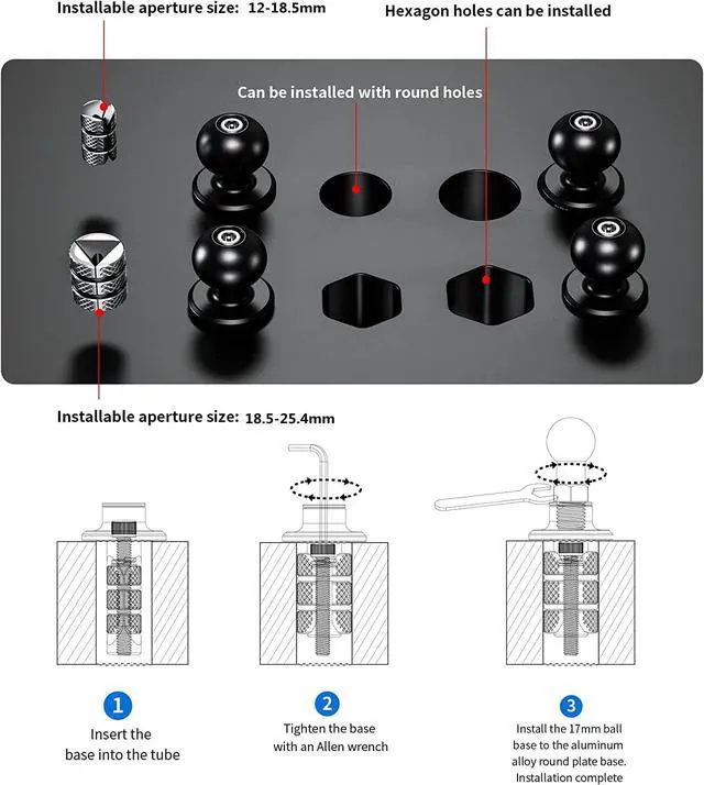 The motorcycle fork stem phone mount ball base equipped with two spacers