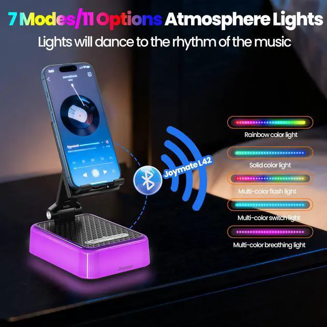 Supports 11 Light Options: including multi-color dazzling lights, breathing color-changing lights, fixed color lights, and rhythm-changing lights that sync with music modes. This multi-scene RGB light effects meet diverse lighting needs for day or night and significantly enhance the audiovisual entertainment experience.