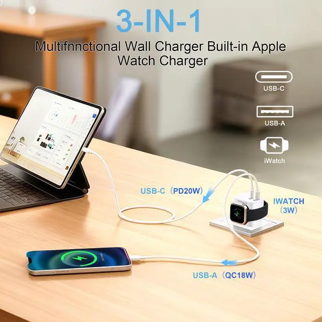 With a 20W USB-C and an 18W USB-A dual port, this charger meets your everyday fast-charging needs for almost all smart devices.
