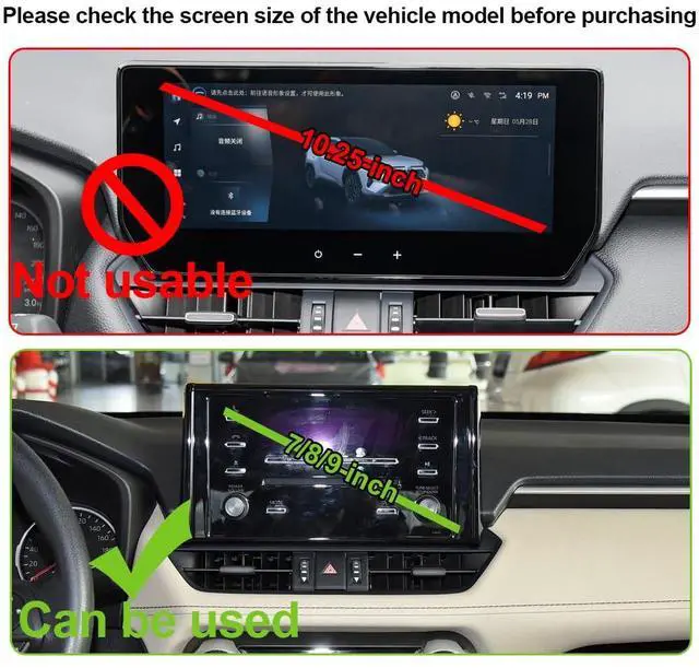 Compatible Vehiclesonly For 2019 2020 2021 2022 2023 2024 Toyota RAV4 7/8/9-inch Screen [10.5-inch Not usable] Tailored models are more sturdy than general models and do not block air ventsThe most appropriate location, make sure the phone is in the best viewing Angle.When driving, it will not slip or fall off, providing you with the most stable and safe driving experience. Unique design forms a three point support, ensuring that this car phone stand does not slip on bumpy roads or sharp turns