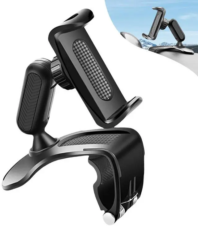 Car Phone Holder Mount, 360 Degree Rotation Car Dashboard Phone Holder, Universal Anti-Shake Dash Steering Wheel Cellphone Clamp Mount Stand for 4-7 Inch Smartphones (Black)