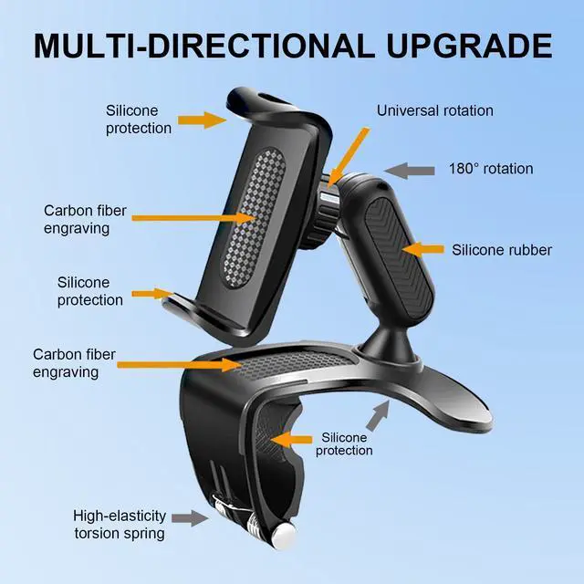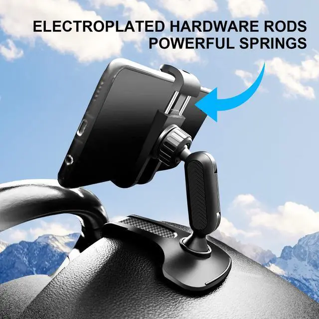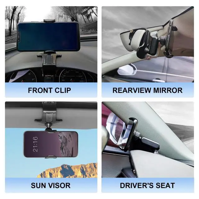 Multifunctional: This versatile car cell phone holder is designed to be used on car dashboards, rearview mirrors, and sun visors. Moreover, it's adaptable to numerous other settings such as tables, bookshelves, kitchens, offices, and more