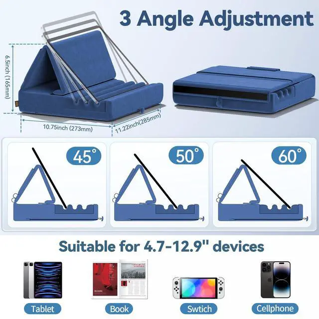 KDD tablet pillow stand compatible with a variety of devices from tablets and iPads to phones such as e-readers, books, iPad Pro 12.9, 11, 10.9, 10.2, Air and smartphones, and gaming console switch.