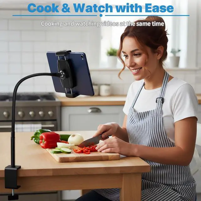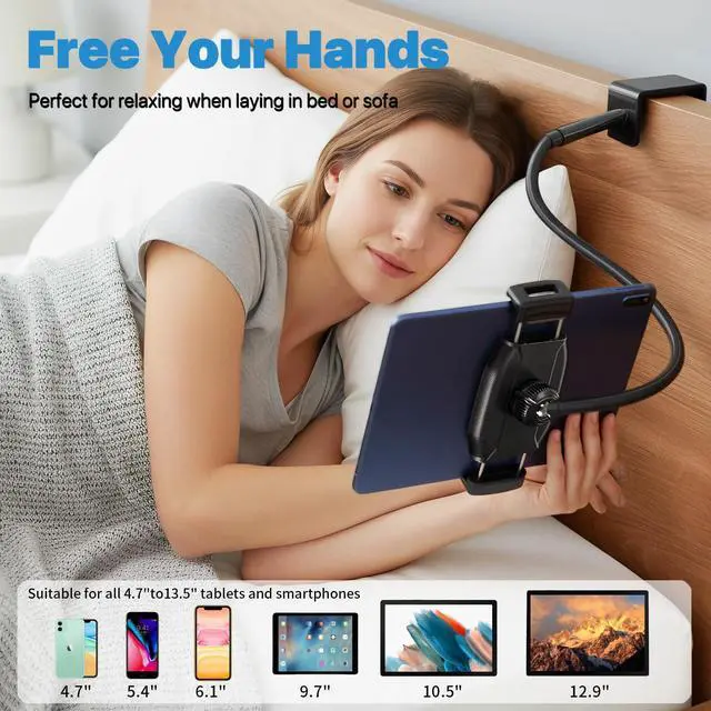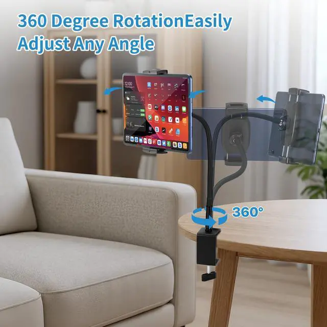 Tablet Stand Holder, Gooseneck iPad Holder Clamp Mount, 360° Adjustable Arm Mount for iPad mini/Air/ProKindle Fire, Galaxy Tabs, All 4.7"-13.5" Tablets, for Work Meetings, Video, Bed, Kitchen