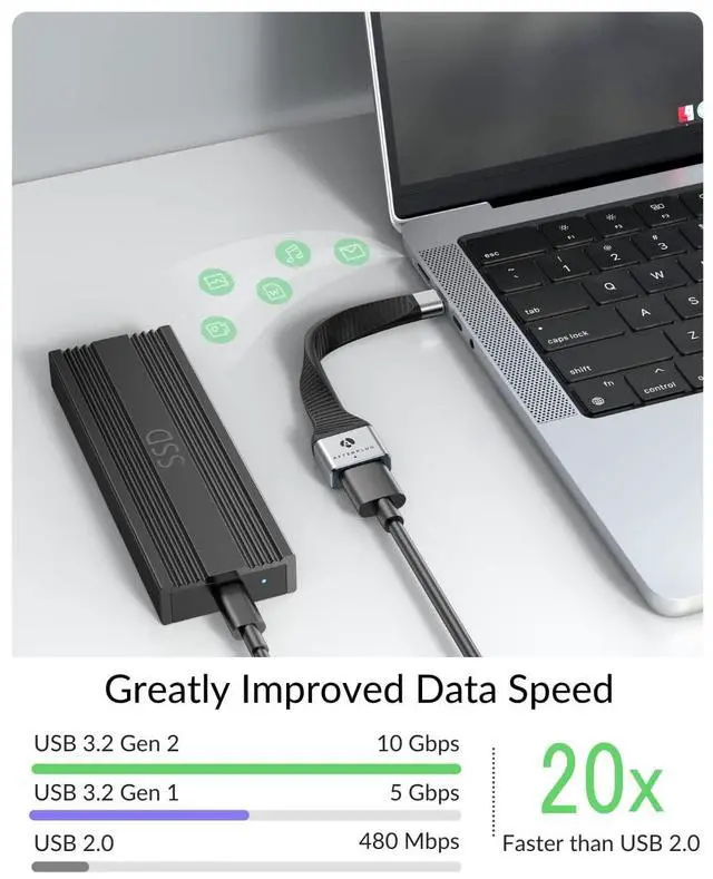 - USB 3.2 Gen 2: High speed data transfer up to 10 Gbps, 20x faster than USB 2.0.