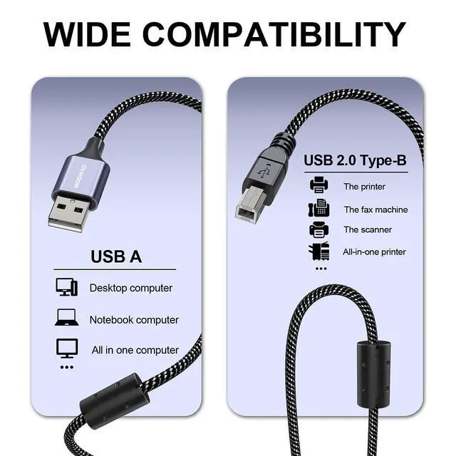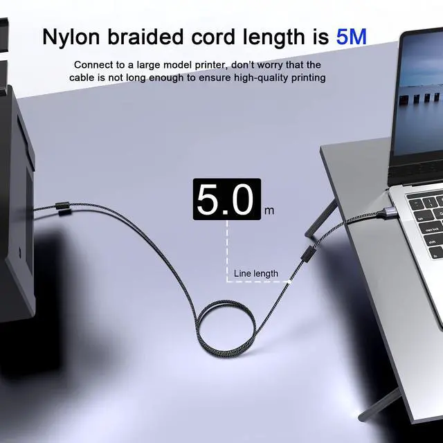 This USB printer cable adopt 24strands high density braided wire,and nylon braided jacket wraps the cable to make it is not easily broken and cracked.And the printer calbe not only strong but flexible plug and unplug.