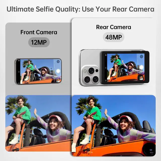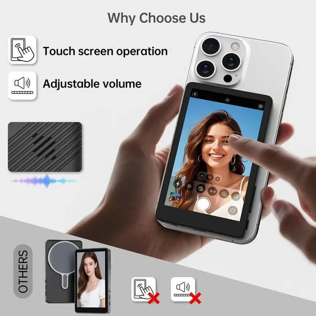 Compact & Portable: 4 inch magnetic selfie screen securely attaches to iPhones and metal surfaces, serving as the perfect travel companion for vloggers. Capture stable footage effortlessly anywhere without bulky equipment