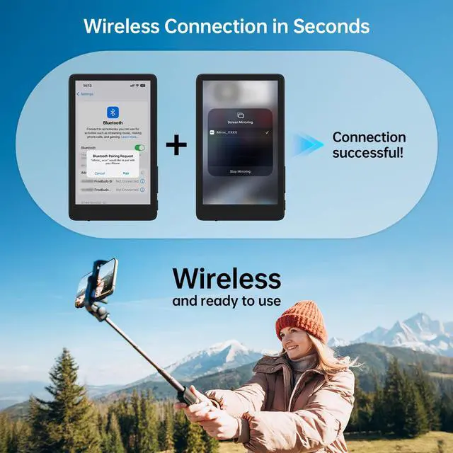 Efficient Touch Screen Control: The wireless touchscreen monitor features touch-sensitive reverse control of your phone. Adjust focus, zoom, and view videos and photos on the screen without switching devices, greatly improving shooting efficiency. It's faster than a remote control or button controls