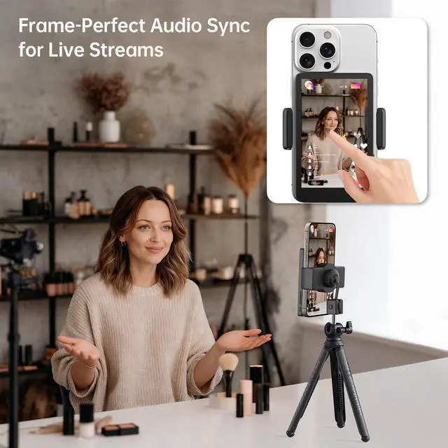 Ultra-Low Latency Audio Sync: Experience near-zero delay between sight and sound through the back camera selfie monitor and built-in speaker. Instantly monitor recordings to reduce reshoots, while live streamers can react to audience feedback without lag - maximizing both filming efficiency and viewer engagement