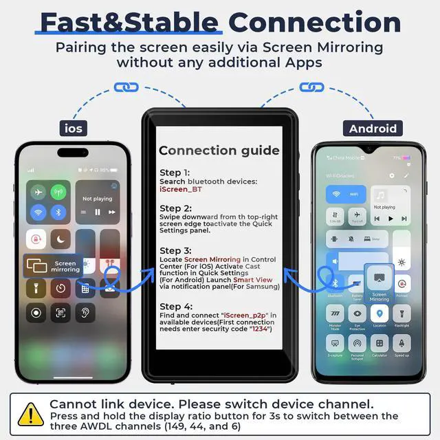 In this case, you accidentally switched the channel of the device. Please switch channels. Press and hold the display ratio button for3s to switchbetween the three AWDL channels (149, 44, and 6)