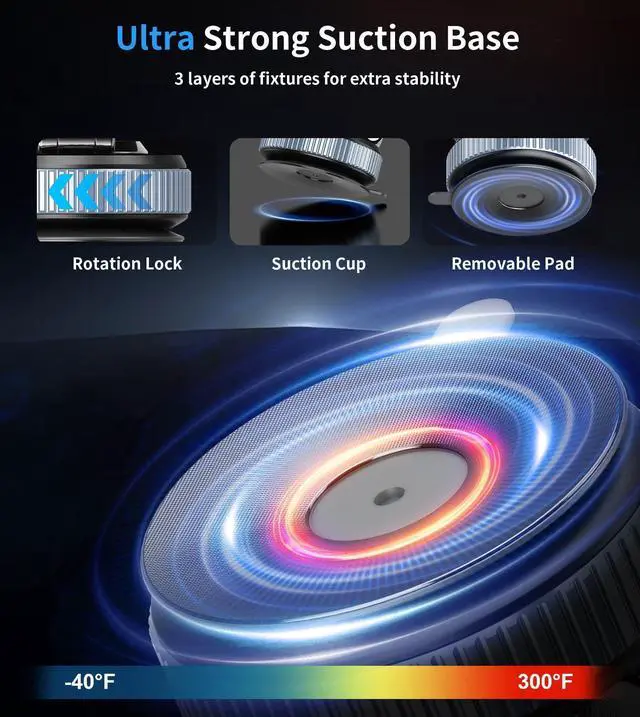 1) For best performance, use only on flat, non-porous surfaces, as textured or uneven areas may reduce stability.2) Before use, please clean the surface to be installed with the included cleaning cloth.3) After installation, please wait 12 hours for the adhesive pad to bond more securely before use.