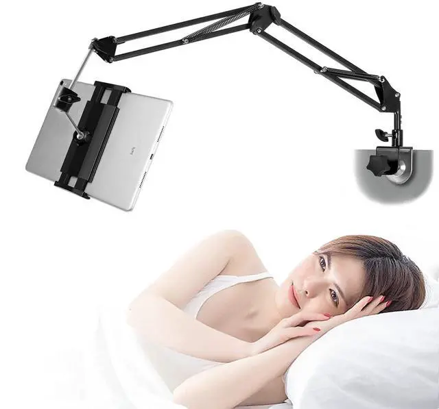 It can be used in horizontal surface like desk kitchen cabinet and bookcase.Bend the arm and turn the holder to the most comfortable viewing position whether your are standing, sitting or lying in bed.