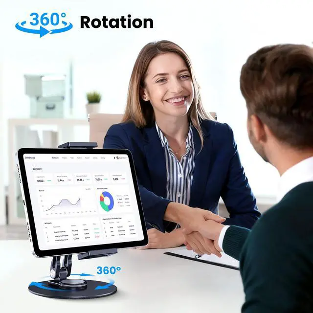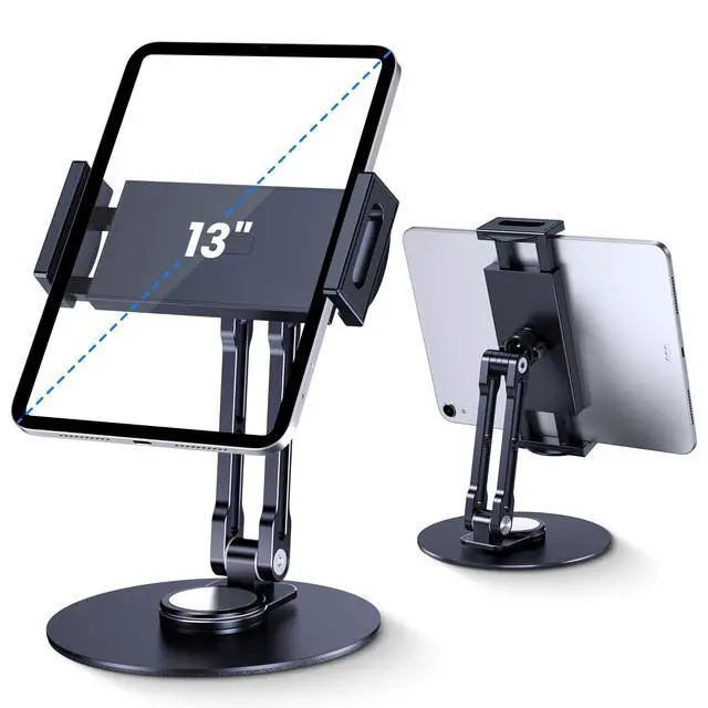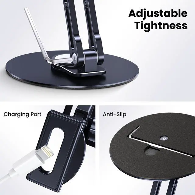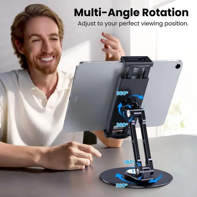 The 360° rotating base takes convenience to the next level: spin your ipad stand for desk between landscape and portrait mode in seconds—no need to reposition the stand! As a multi-use ipad holder stand and tablet stand holder, it balances sturdiness (weighted circular base prevents tipping) and portability, making it ideal for home, office, or travel.