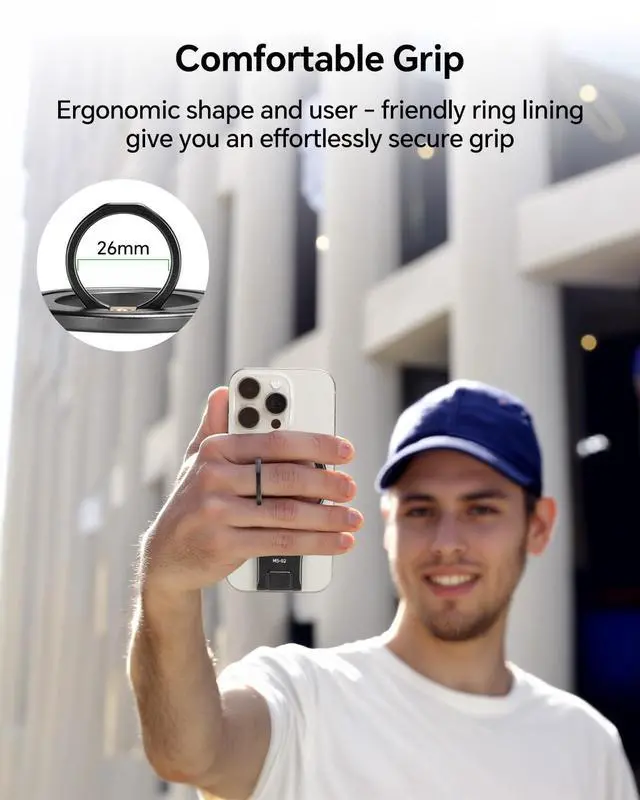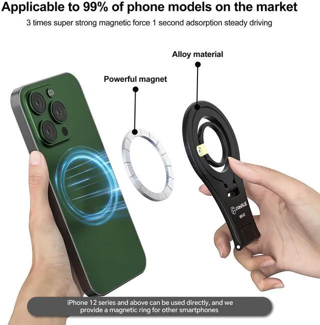 The magsafe ring grip can directly snap onto iPhone 16 Pro Max, 16 Pro, 16 Plus, 16, iPhone 15 14 13 12 Series, or MagSafe phone cases. The equipped metal ring also makes it compatible with standard phone cases for non-magnetic phones, such as Samsung Galaxy S24 S23 S22 S21 S20 A16 A15 A14 A35 A55 A54 A53, Google Pixel, Moto, LG, and other smartphones.