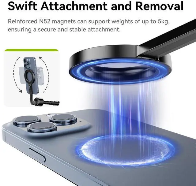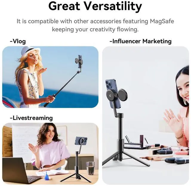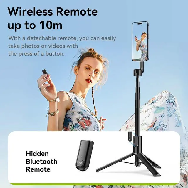 Selfie Stick & Tripod 2 in 1The ULANZI Mobile Phone Magnetic Bluetooth Selfie Stick Pro could easily shift from a dependable selfie stick to a steady tripod. And the distinctive magnetic ring and double-sided magnetic design ensures more versatility in your photography.