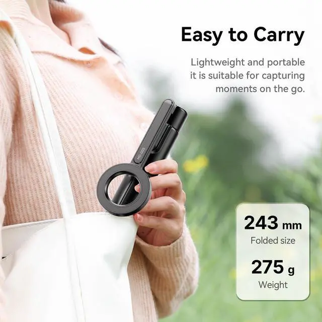 Compact & Portable DesignThe ULANZI Selfie Stick Pro is lightweight at 9.70z/275g and can fold down to 9.4''/24cm for easy portability. Just slip it into your backpack or pocket and you'll be prepared to capture moments wherever your adventures take you.