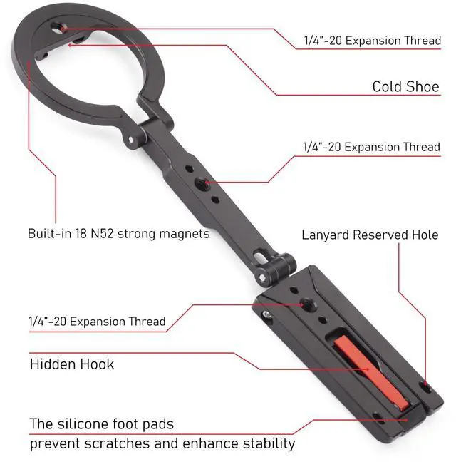 - Versatility (5-in-1 Design): Integrates tripod, handheld grip, folding hook, cold shoe mount, and 1/4" screw adapter—ideal for vlogging, photography, travel, and daily use.