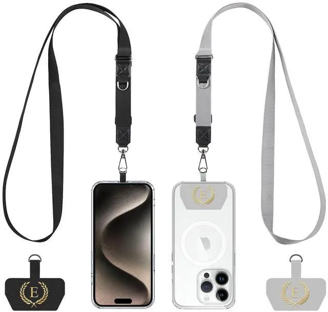 Cell Phone Lanyard 2 Pack-2×Adjustable Crossbody Strap, 2×Letter Patches, Universal Neck Strap Compatible with Most Smartphones and Wallets Keys Travel Essentials Black/Gray (Letter E)