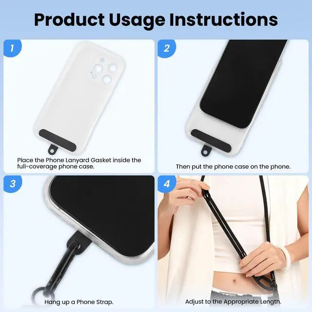 The length of the phone strap is adjustable and can be freely adapted to different body shapes.