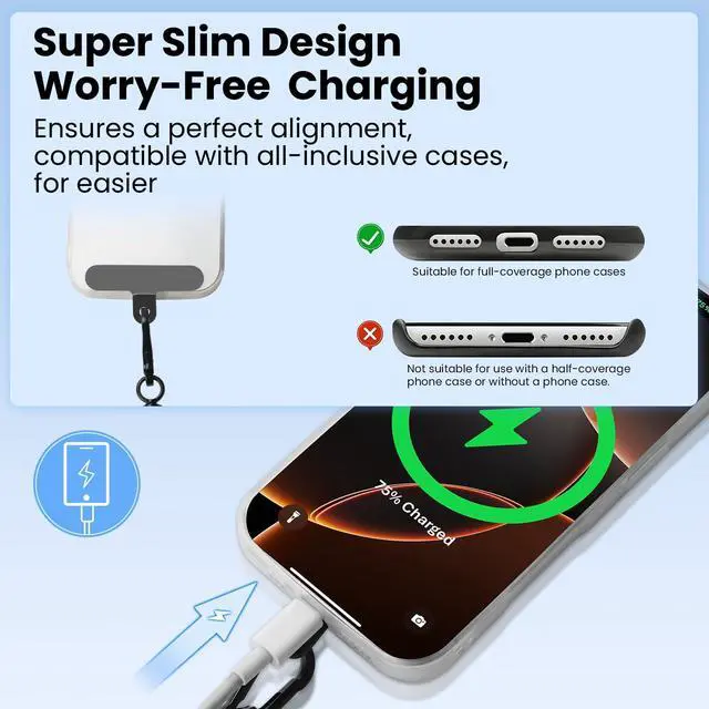 No need to disassemble while charging; practical with a full-coverage phone case, keeping your phone always within your sight.