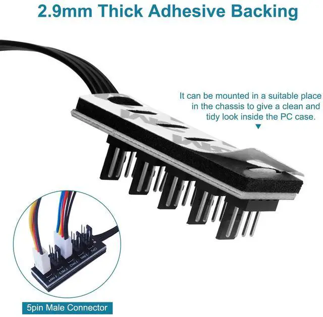 The pc fan splitters with a 2.9MM thick adhesive backing that fits in the right place in the chassis for a clean and tidy look inside the PC case.