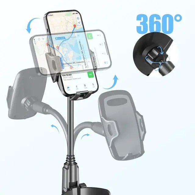 Cup Phone Holder for Car with 360° Adjustable Long Gooseneck, Cell Phone Holder Mount for Car | Truck | Golf Cart Compatible with iPhone & Samsung & All Smartphones