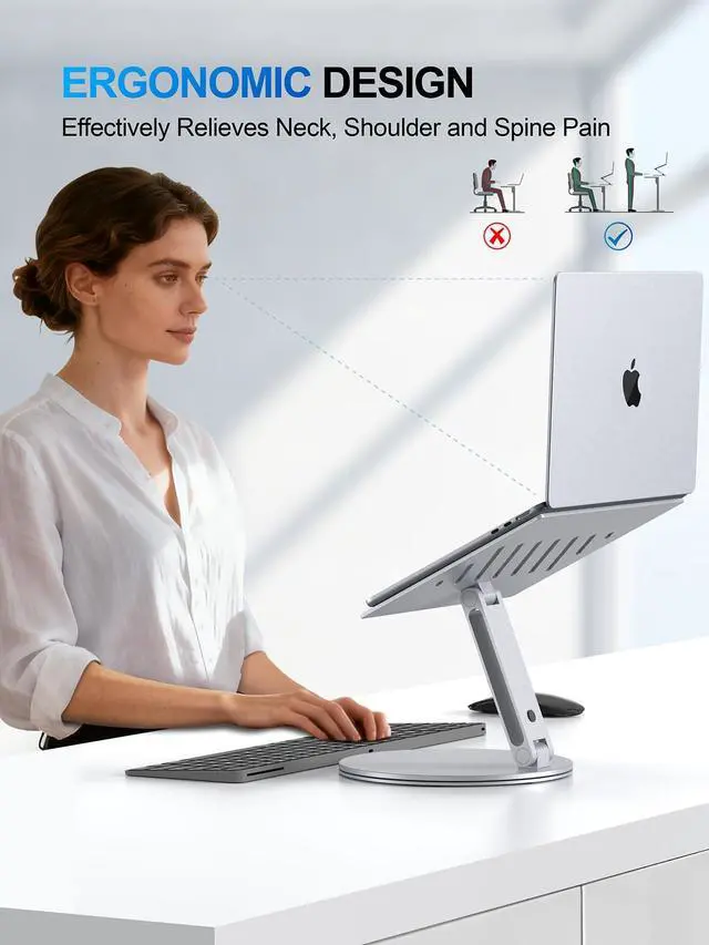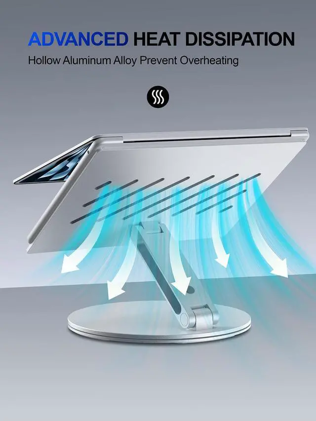 360° Rotation for Effortless Sharing & CollaborationLaptop stand for desk features a 360° rotatable base, enabling smooth and flexible screen sharing. Perfect for meetings, team collaboration, and video communication, it allows you to share content with others easily without moving your entire notebook.