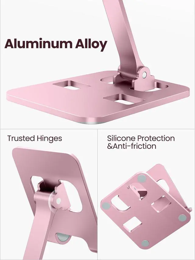 Sturdy & Protective: The cell phone stand is made of high quality premium aluminum, it stays firmly in place, hold your phone steadily. The rubber pads one the stand shield your phone from scratches and stop it sliding, while bottom pads grip your desk tightlyno surface scratches, plus long-lasting durability.